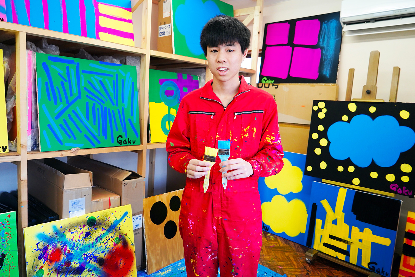 “When I first met GAKU, it was difficult to simply walk together, I would always have to hold his hand so that he wouldn’t run off. He would just say what he wanted to say, and it wasn’t an actual conversation, but he was always a cheerful boy who loved to talk, and he still is. Now that he knows that he can communicate through his art, GAKU feels comfortable in expressing his inner feelings, he understands the joy of communicating with others, and connecting with others.